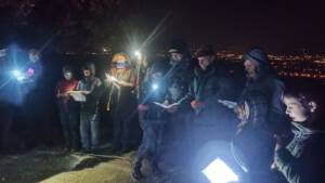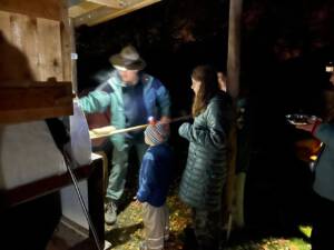 Freitagabend – schon im Dunkeln – eröffneten wir mit ein paar Worten und einem warmen Essen am Lagerfeuer das diesjährige Herbstlager in unserem Pfadi-Garten. Im Anschluss starteten wir zur Nachtwanderung an den Sachsens Hiefel in Rockau. Nach einer Andacht von Andreas dort unter dem wunderschönen Sternenhimmel beobachteten wir Sternenschnuppen oben und unten Tiere wie Hase, Fuchs und Reh durch das Nachsichtgerät. Voller schöner Eindrücke und platt von der Woche kuschelten wir uns zurück in unsere Schlafsäcke.