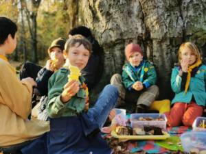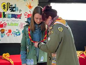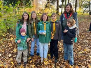 Am nächsten Morgen – nach einem Frühstück am wärmenden Feuer – bereiteten wir den festlichen Höhepunkt vor. In einem interaktiven Gottesdienst von Andreas wurde Christian feierlich zu uns in die Gruppe aufgenommen. Vier weitere Pfadis wurden in die nächst höhere Altersstufe gestuft. Mit einem Natur-Konfetti-Segen wurde alles besiegelt. Nach einem gemeinsamen Mittagessen machten wir uns auf in den Helfenberger Park, wo Markus ein Geländespiel für uns vorbereitet hatte. Mit ein paar kniffligen Aufgaben und Pfadiwissen haben wir aber den Schatz gefunden. Nach einer gemeinsamen Kaffeepause unter der wärmenden Restsonne ging es wieder zurück in den Pfadi-Garten. Zum Abend bereitete jeder Pfadi seine eigene Mahlzeit nach eigenem Belieben über eigenem Köcher in kleinen Töpfen oder Pfannen zu. In unserem großen Steinofen backten wir Brötchen. Es konnte nach Lust und Laune geschlemmt und probiert werden. Am Lagerfeuer ließen wir den Abend ausklingen.