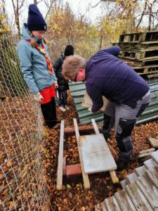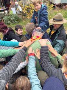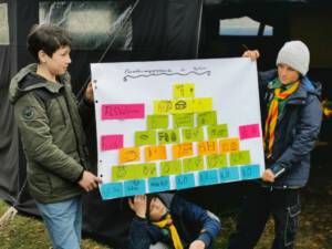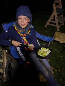 Nach einer kühlen Nacht – und dennoch ohne zu frieren – lauschten wir einer kleinen Andacht von Maike und frühstückten anschließend am Lagerfeuer. Danach legten einige Pfadis ihr Fachabzeichen „Kochen“ mit Theorie bei Marion ab, bauten mit Stephan ein Igelhaus und bereiten Andreas einen gelungenen Abschied. Leider war es nun bei und mit uns sein letztes Lager.