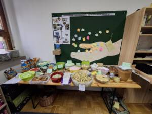 An der Hofewiese angekommen gab es eine kleine Verschnaufpause. Wir haben „alles, was nach oben fliegt“ in die Luft steigen lassen und Florentine stellte uns die Heilpflanze des Jahres – die Nachkerze – vor. Dann mussten wir schon wieder den Rückweg antreten – allerdings nicht ohne noch etwas Tierweihnachten zu feiern.
