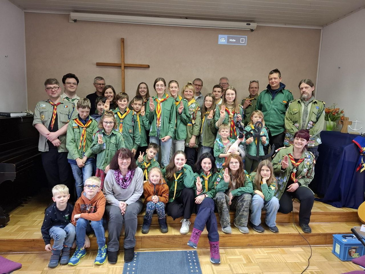 Nach einer kleinen Vorstellungsrunde der Pfadfinder und der Gemeinde erlebten wir einen interaktiven Gottesdienst mit Marion zum Thema „Ankern“ und sprachen darüber, was uns im eigenen Leben ein Halt ist. Am Ende gab es für jeden einen kleinen Anker mit auf den Weg. Im Anschluss hatte die Gemeinde Radeberg ein großes Festmahl mit vielen Köstlichkeiten vorbereitet. Es war für jeden etwas dabei. Vielen lieben Dank.